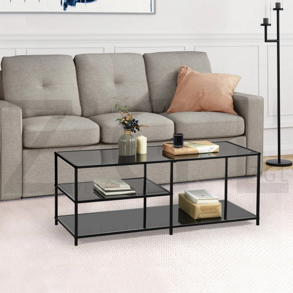 Product size: W1100 * D400 * h420mm, foot tube (including spraying): 13 * 13 * 0.95mm, gourd lock piece (including spraying): 25 * 12 * 1.8mm, flat lock piece (including spraying): 35 * 12 * 2.5mm. Steel pipe is sprayed with black matte, glass size: 1072 * 372 * 5mm * 2pcs, 527 * 372 * 5mm * 1pcs. Toughened black glass, glass is directly built into the iron frame suction cup. E-commerce packaging, paper 200 pounds. |