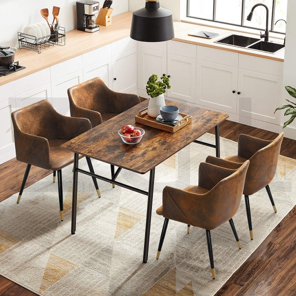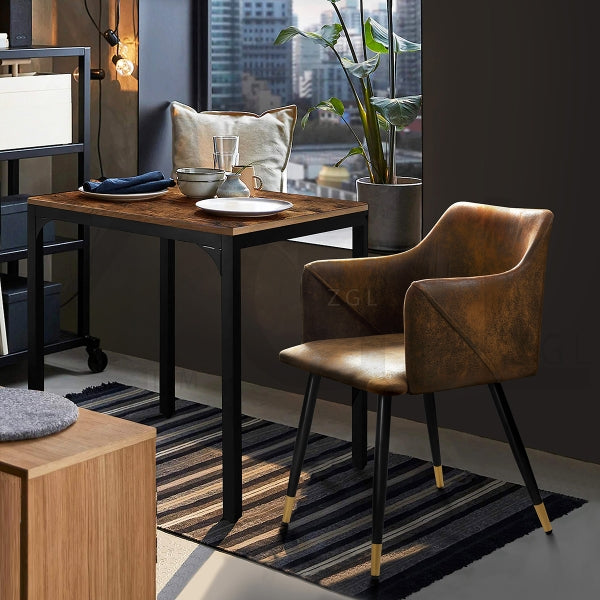 Dining Chair, Product size:47*52*75.5cm,suede brown fabric, black powder coating legs with golden feet . 2pc/ctn.