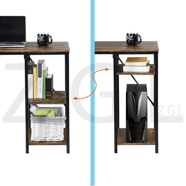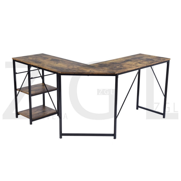 Corner computer desk. Product size: 138x138x75cmm. Pipe diameter: 20x20.8mm, matte black spraying. E1 15mm particleboard is pasted with vintage brown melamine + 1mm PVC of the same color for edge sealing. Brown 200 pound cartons, e-commerce 3A drop box standard and e-commerce shipping standard.