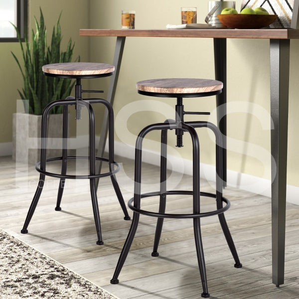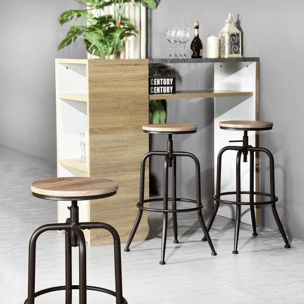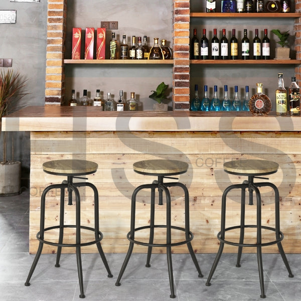 Barstool.Product size: .W38.5*D38.5*H68-76.5CM; 25*1.0mm Metal tube in BLACK powder coating; 18mm MDF with F10 OAK PVC on seat.2PCS/CTN; 200PSI Brown Carton Box With Black Printing; Mailbox