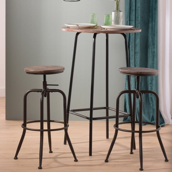Barstool.Product size: .W38.5*D38.5*H68-76.5CM; 25*1.0mm Metal tube in BLACK powder coating; 18mm MDF with 246T WANLNUT PVC on seat.2PCS/CTN; 200PSI Brown Carton Box With Black Printing; Mailbox |