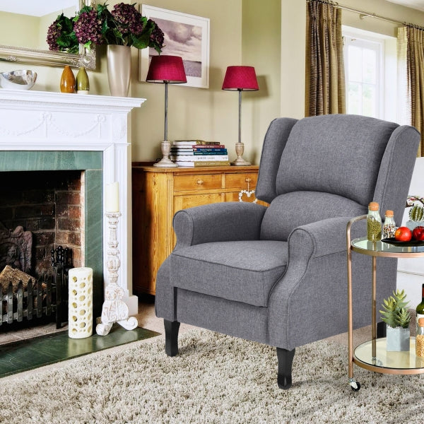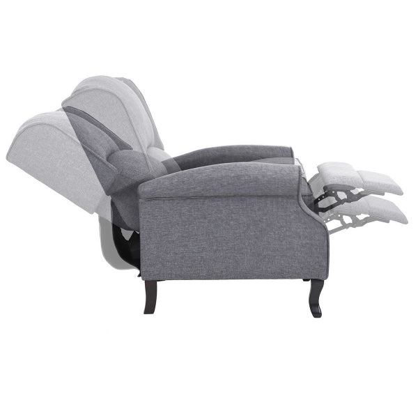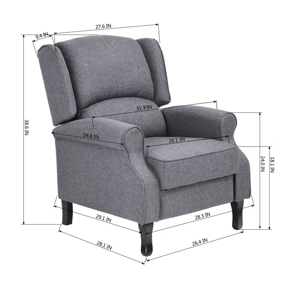Fabric cover, wooden frame with matel frame , dark color wooden legs, push back , PACKING: 1pc/ctn, 200LBS brown box with draing , pass the drop test, 1pc/ctn, 3% spare screws, Skin packing