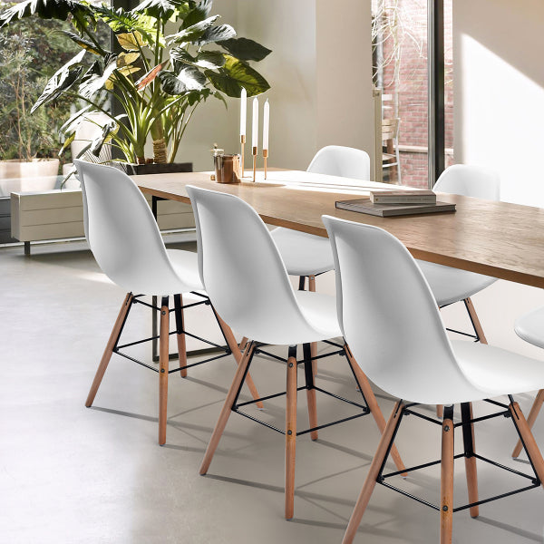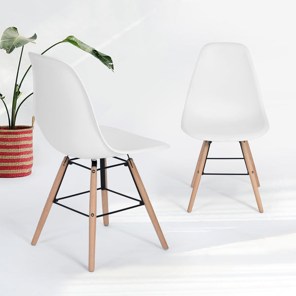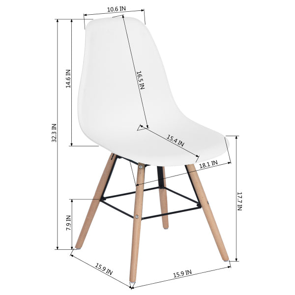 product size: 51.5*46*81.5 cm, WHITE PP backrest and seat, beech leg with black painting steel bar frame.4pcs/ctn, brown box with line-drawing.