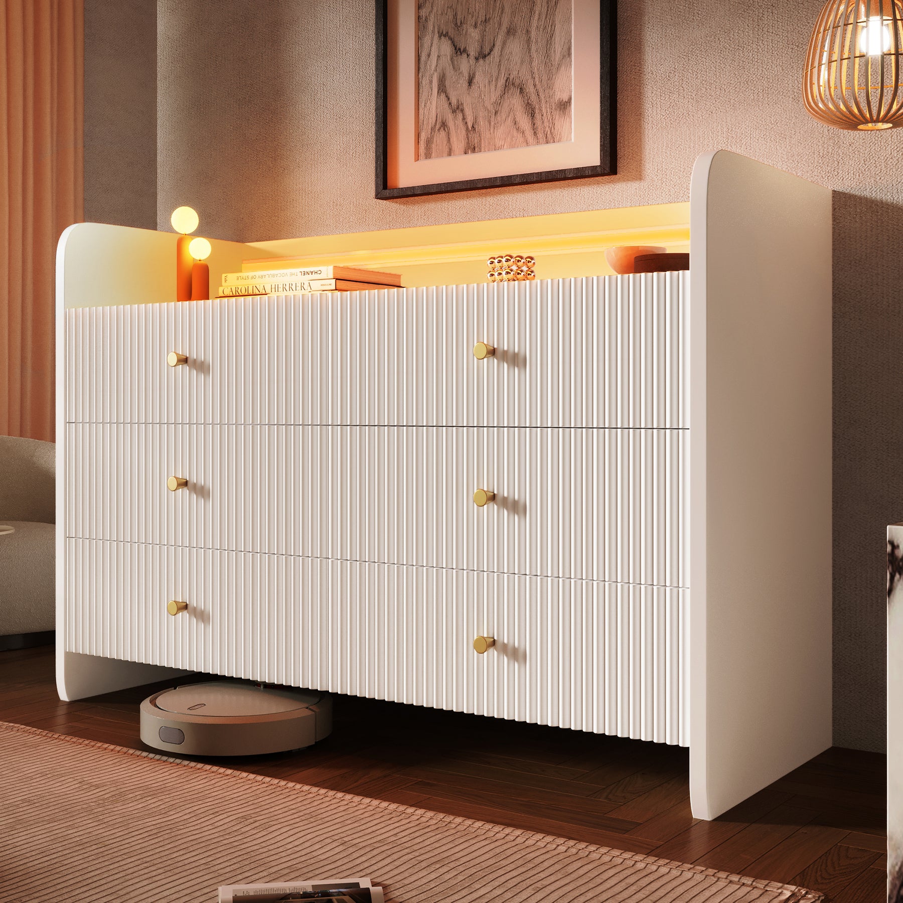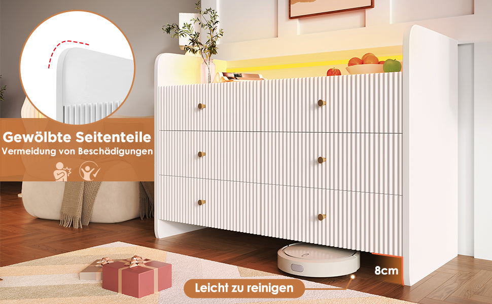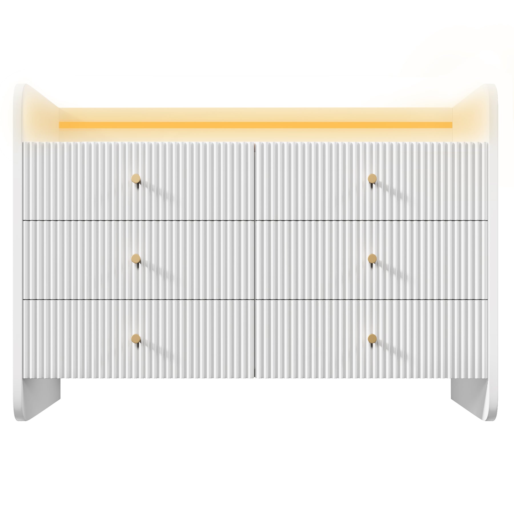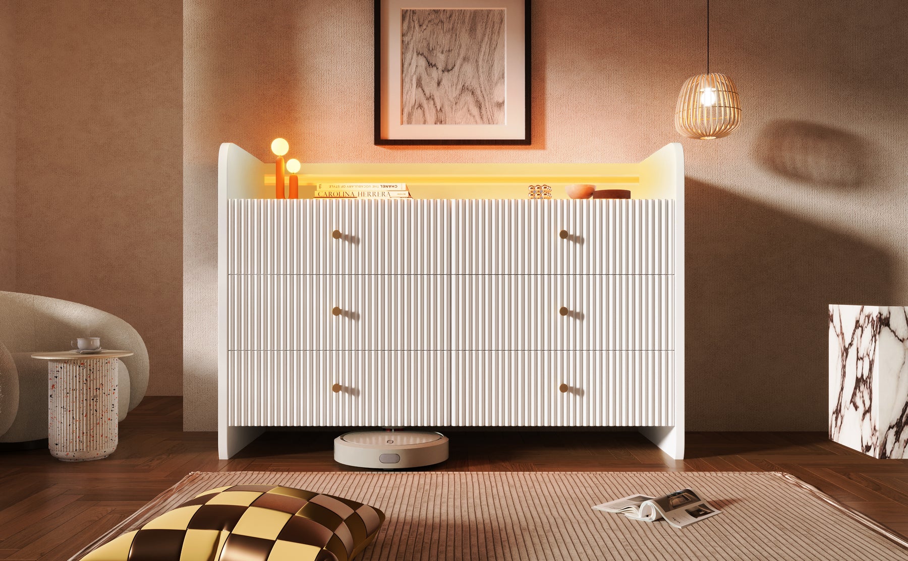Buffet Blanc Ondulé Moderne avec Éclairage LED Multicolore et 6 Tiroirs Spacieux TRAGVAX