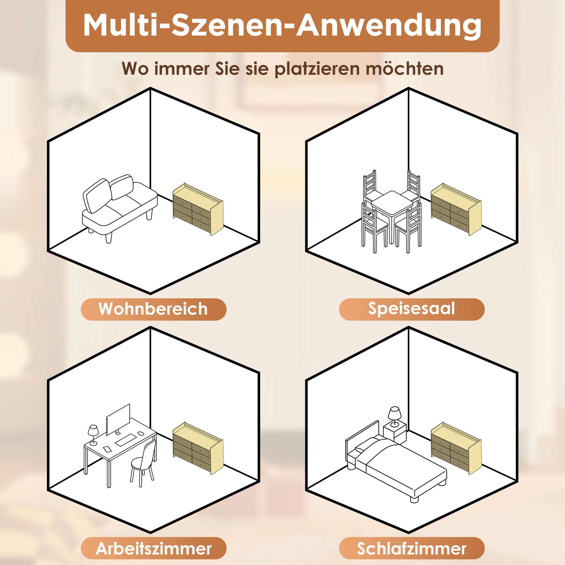 • Rangement Abondant et Organisé : Doté d'un compartiment ouvert supérieur pour les articles fréquemment utilisés et de six tiroirs bien conçus avec des glissières silencieuses, ce buffet offre un espace généreux pour un rangement ordonné et un accès facile.