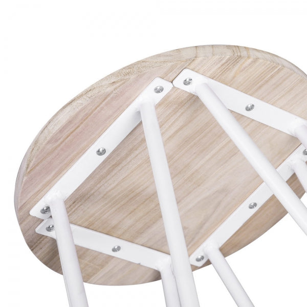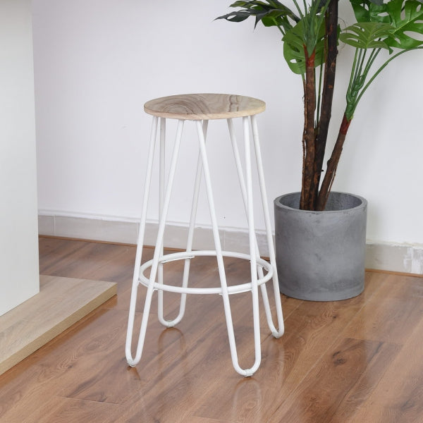 Bar Chair, Seat: Paulownia wood, Seat size: W30*D30cm*63cm, Metal tube with diameter 13mm, thickness 0.8mm, Metal feet with matt white powder coating, 2pcs/CTN, mailbox.