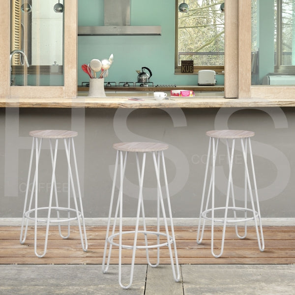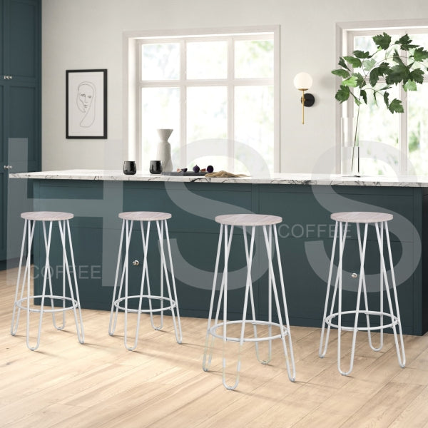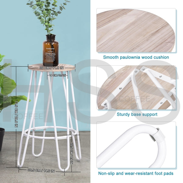 Bar Chair, Seat: Paulownia wood, size: W30*D30cm*H73cm, Metal tube with diameter 13mm, thickness 0.8mm, Metal feet with matt white powder coating, 2pcs/CTN, mailbox.