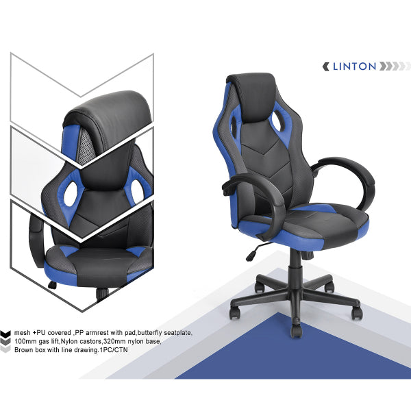Office Chair, PU+Mesh cover, PP armrest with PU pad, 100mm class 2 gaslift, 320mm nylon base, nylon castors200LBS brown box with draing , pass the drop test, 1pc/ctn