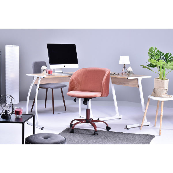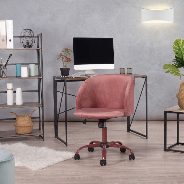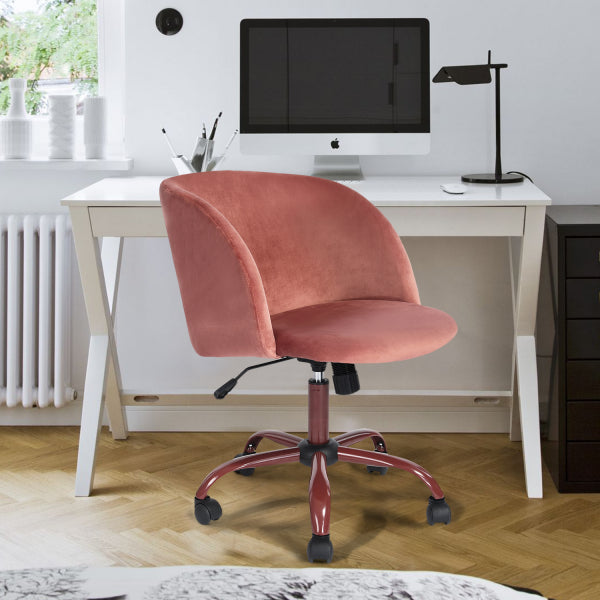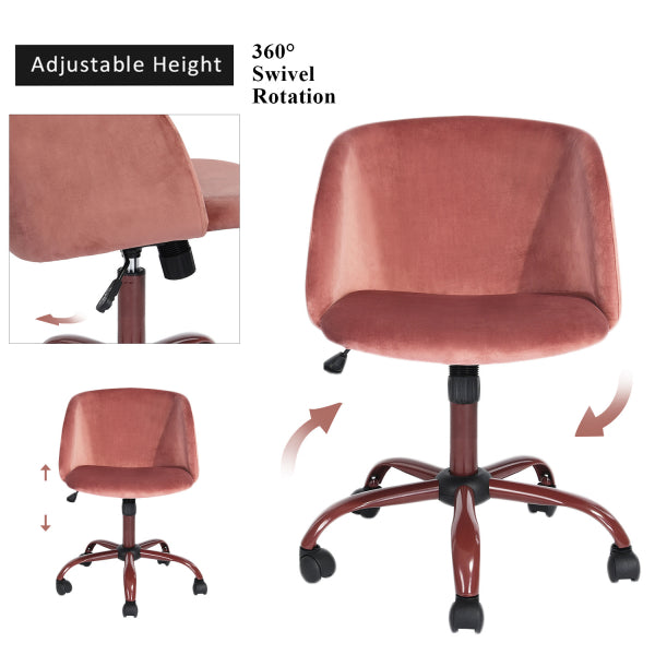 Office Chair; Product Size: W54*D62.5*H77-87CM Velvet Fabric, Butterfly Mechanism, Colorful Painted Gas-lift, Coated Colorful Metal Base, Nylon Caster, 200LBS Brown Box With Line Drawing, Mail Package Standard, 1PC/CTN