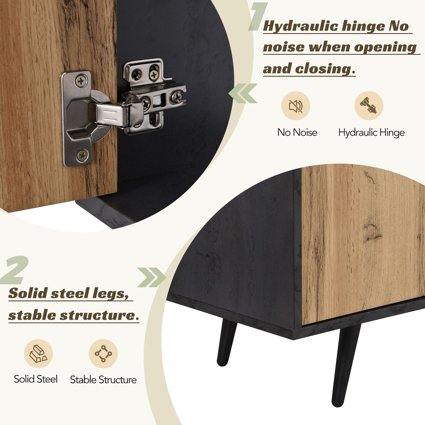 • Gestion des Câbles Intégrée : Des ouvertures préinstallées à l'arrière du meuble permettent de dissimuler et d'organiser les câbles de manière nette et ordonnée, éliminant ainsi les enchevêtrements disgracieux.