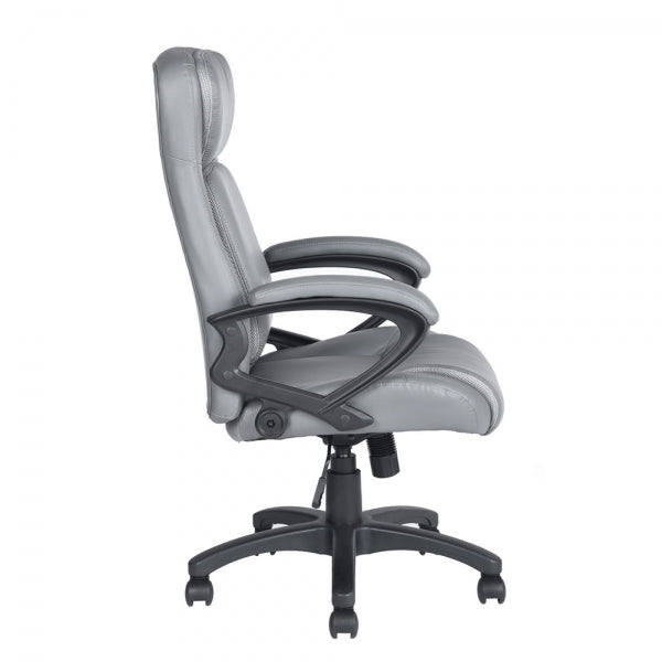 PU+PVC OFFICE CHAIR, BACK WITH ADJUSTABLE SUPPORT, PP ARM WITH PAD, BUTTERFLY MECHANISM, 100 CLASS 3 GASLIFT WITH COVER, 320 NYLON BASE, NYLON CASTOR, 200PSI Brown Carton Box With Black Printing |